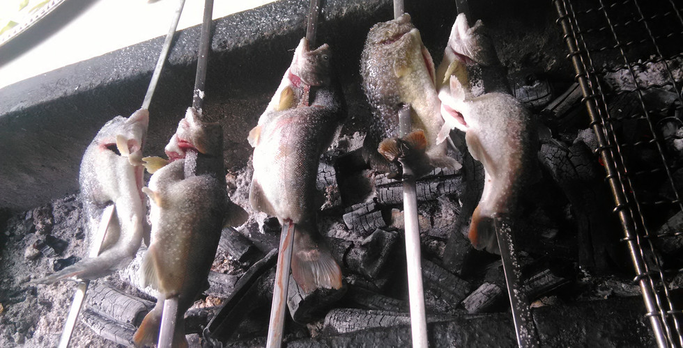しかしメインはお肉ではなく!釣ったイワナ!